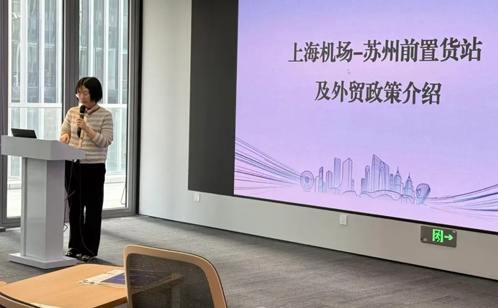 活动伊始,苏州工业园区商务局就前置货站及相关外贸政策进行深度解读。通过扎实的数据与分析,她清晰展现了园区外贸发展的韧性与潜力,并就企业如何把握政策红利、优化发展路径提供了切实指引,进一步坚定了企业开拓国际市场、迈向高质量发展的信心。