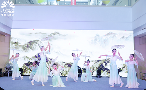上午十时,汇演在充满蓬勃朝气的群舞《中国梦娃》中拉开帷幕。孩子们身着鲜艳服饰,以稚嫩却坚定的舞姿,生动诠释着纯真孩童对家国未来的美好憧憬,瞬间点燃了全场的热烈氛围。紧接着,《飞天乐鼓》将观众思绪引向千年丝路,小舞者们化身敦煌壁画的灵动仙子,长绸飞舞,鼓点激昂,古典舞的婀娜与力量在方寸舞台间完美交融,演出渐入佳境。《灯影江南》以柔美婉约的肢体语言,勾勒出一幅烟雨朦胧的水乡画卷;而舞蹈《水龙吟》则气势磅礴,展现了少年们刚柔并济的别样风采。