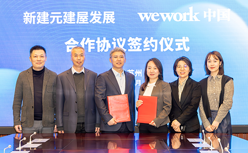春启新程,3月5日,新建元控股集团旗下建屋发展公司(新建元建屋)与WeWork中国举行合作协议签约仪式,双方以建屋发展旗下建屋大厦为载体,共同打造苏州工业园区湖东CBD高品质创新办公空间。