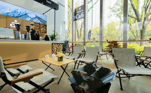 3月20日,户外生活方式品牌snow peak Cafe苏州工业园区首店在新建元集团旗下金鸡驿09正式启幕。顾客不仅可以品尝精品咖啡,还能在户外露营椅上,亲身体验snow peak经典装备的舒适感,感受“人生在野”哲学的同时,包揽金鸡湖的独特魅力。